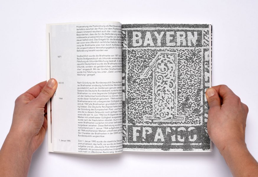 Mein Ausgangspunkt der Arbeit „Architektur der Briefmarke“ war ein großer Karton unsortierter Briefmarken, die ich als ersten Schritt nach verschiedenen Kategorien sortierte. So entstand eine Auswahl im Bereich Sport, Architektur, Köpfe und Natur, womit ich für jeden Bereich Briefmarken aus mehr als 30 Ländern auswählen konnte. Jedes Kapitel bekommt eine andere gestalterische Umsetzung. So wurden die Köpfe abstrahiert, dass nur die Pixelform erkennbar ist. Das Kapitel Architektur zeigt die unterschiedlichen Kompositionen der Briefmarken, die einmal als ausgeschnittene Form und als schwarzweiß Grundriss dargestellt werden. Die Gestaltung für Tiere und Pflanzen zeigt die Schönheit jedes einzelnen Motives, die in Form von Postkarten zu neuen Kompositionen dargestellt werden. Das Kapitel Sport stellt die Sportler in reduzierter Form als Silhouetten dar. Als Einleitung der Neuinterpretation wird im ersten Kapitel nicht nur die Geschichte der Briefmarke erzählt, sondern auch charakteristische Merkmale erklärt.