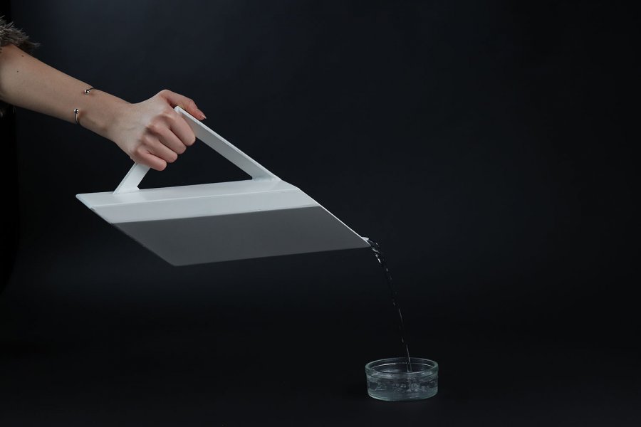 slant ist eine Kanne, die das Ausschenken von Getränken erleichtern soll. Durch die ca. 50° schrägen Außenwände im Kombination mit dem senkrechten Griff, ist es möglich die Kanne bis auf den letzten Tropfen auszuschenken oder das Handgelenk und den Unterarm um mehr als 90° um ihre Längsachse zu drehen.