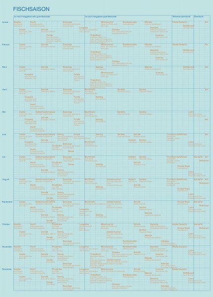 Um die Faktoren beim Einkauf zu berücksichtigen, hilft der Fischsaison-Kalender.