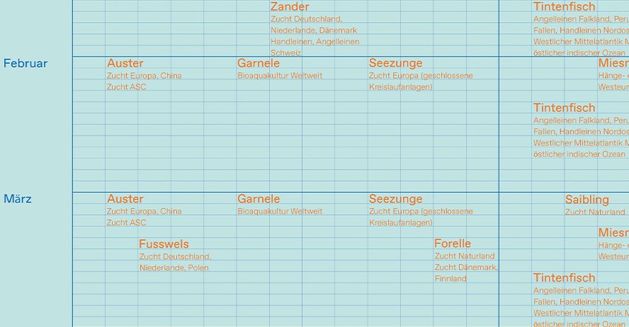 Wie Obst und Gemüse haben Fische eine Saison. Wenn Fisch und Meeresfrüchte nur nach Saison und aus nicht überfischten Regionen, nachhaltig gefangen, gekauft werden, werden Fischbestände geschont, Meeresböden können sich erholen und die Fische und Meeresfrüchte haben eine bessere Qualität.