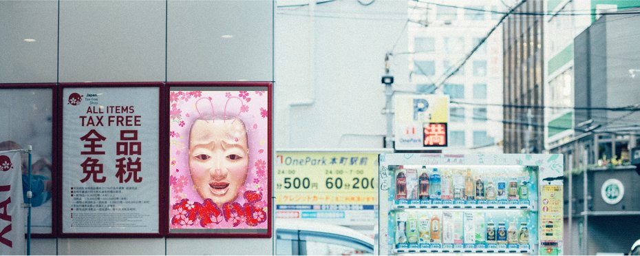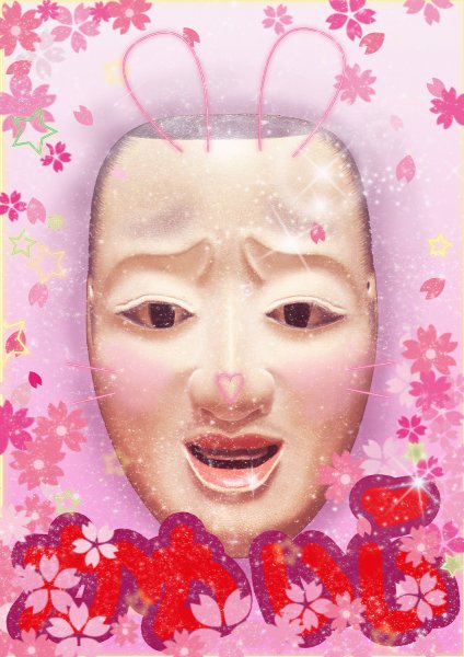 Traditionelle Holzmasken werden seit dem 14. Jahrhundert bis heute im Nó Theater verwendet. Eine alte Nó Maske wurde durch einen Fotofilter geschickt, welcher heute als moderne Maske dient. Viele Menschen, überall auf der Welt, nutzen Face-Filter um ihre Gesichter zu optimieren. In Japan um sich süß, kawaii, zu machen.