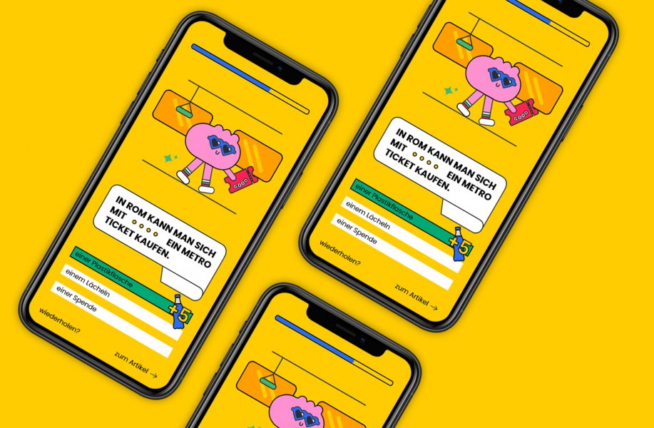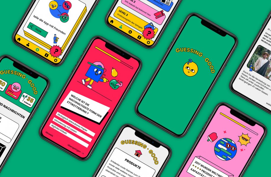 GUESSING GOOD ist eine Quiz-App, die basierend auf Gamification faktenbasierte, gute Nachrichten attraktiv und interessant vermittelt. Eine tägliche Frage illustriert aktuelle umweltbasierte Entwicklungen und wirkt dabei wie eine geballte Dosis Optimismus. Außerdem kann der User unterschiedliche Challenges absolvieren, sich so Levels hocharbeiten und dabei Preise freischalten und Spielpunkte erspielen. Diese können im Store der App entdeckt werden und für Rabatte bei nachhaltigen Partner-Brands eingelöst werden.