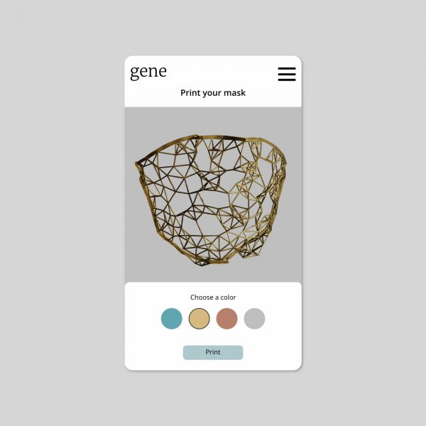 "Gene" ist eine Gesichtsmaske, die mit Hilfe eines 3D-Scans individuell an das Gesicht der tragenden Person angepasst wird.