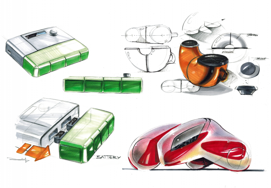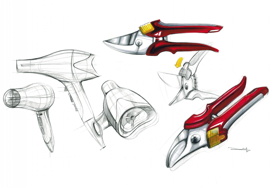 Darstellen von Objekten mit vorwiegend analogen Zeichentechniken aus dem Industriedesign.
