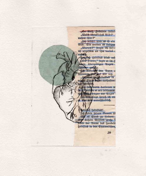 Radierung auf alter Buchseite im Chine Collé Verfahren