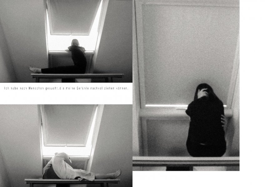 "Umgeben von ständiger Ruhe, Eintönigkeit, Einsamkeit. Ich fühle mich manchmal allein, ungeliebt, verloren. Ich weis oft nicht was ich tun kann, da alles irgendwie falsch ist. Ich bin umgeben von den selben vier Wänden, Tag ein, Tag aus. Manchmal allein. Manchmal zu zweit. In der Nacht sollte man sich erholen, aber von was, frage ich mich. Vom einsam sein?"