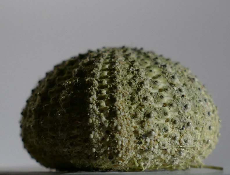 Durch die Nahraufnahme und den Weitwinkel wirkt der kleine Seeeigel groß und monumental.