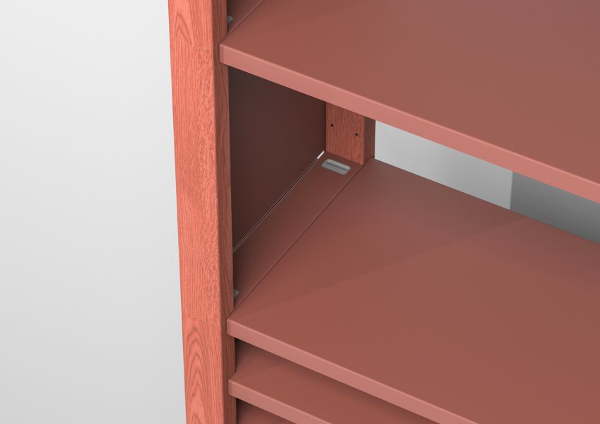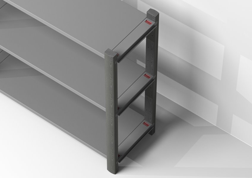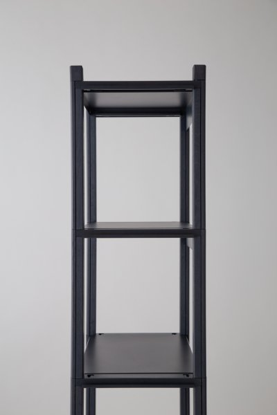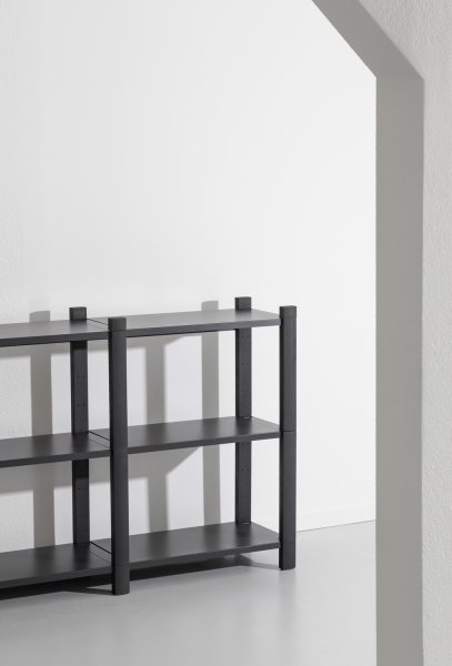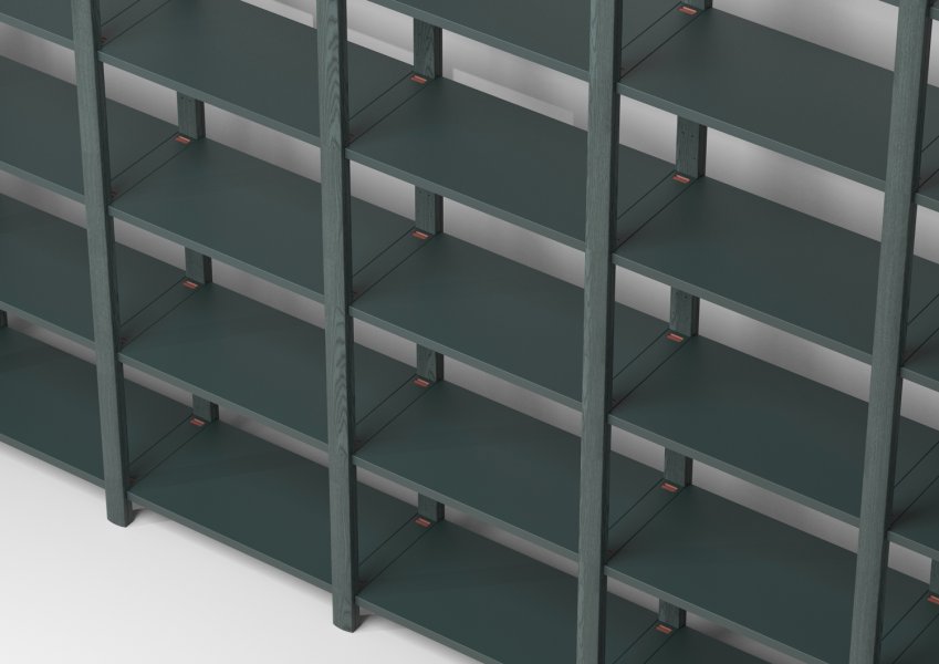 Als Testfeld für den eigenen gestalterischen Prozess und die Haltung zum Design dient die Produktgruppe Organisation und Aufbewahrung als eine weiße Leinwand. Auf diese werden Gedanken und Erkenntnisse angewendet und Produktgestaltung auf Grundlage zeitaktueller Werte betrieben. Als Basis dient ein Businesskonzept das Begriffe wie B2C, Service, Zirkularität und Refurbishment in das Möbeldesign einführt. Aufbauend darauf steht die Wandelbarkeit im Zentrum des Entwurfs. Als sich Lebenssituationen anpassendes Möbelsystem stehen Anforderungen wie Reparierbarkeit, Erweiterbarkeit, Reduzierbarkeit, Umbau, Konfiguration und Werkzeuglosigkeit im Vordergrund. Gestalterisch liegt der Schwerpunkt auf der Kombination von Holzelementen mit pulverbeschichteten Kantblechteilen. Die Wärme und Nahbarkeit der Vertikale kontrastiert und erklärt gleichzeitig die technische, funktionale Horizontale. Das System lässt sich in einem festgelegten Raster erweitern und reduzieren und ist nach Regeln definiert, welche eine visuelle Ausgeglichenheit auch bei individueller Konfiguration garantieren. Im Rahmen des Projekts entstand die Nullserie des Möbelsystems, eine Dokumentationswebsite sowie die Angestaltung der Marke.