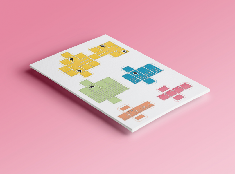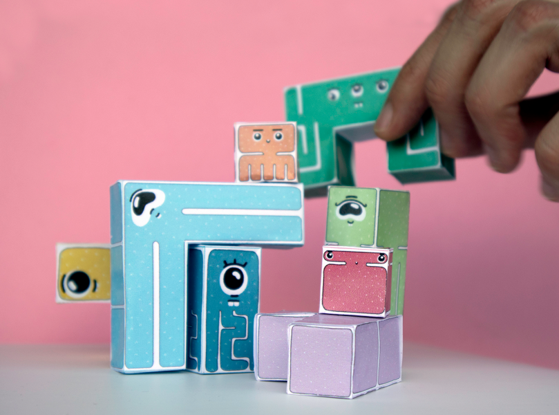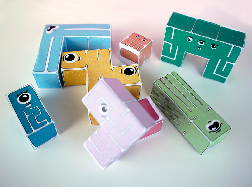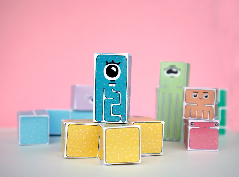 "mini monster" sind kleine bunte Monster aus Papier, die man selber Zuhause ausdrucken und zusammen kleben kann.