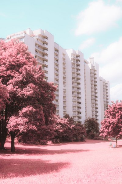 München wurde 2019 beim Quality of Life Award zu einer der lebenswertesten Städte der Welt ernannt. Diese Arbeit zeigt eine andere Seite die bei diesen Awards nicht betrachtet wird. Die Fotos sind in einer Anlehnung an den infrarot Film, Kodak Aerochrome bearbeitet.