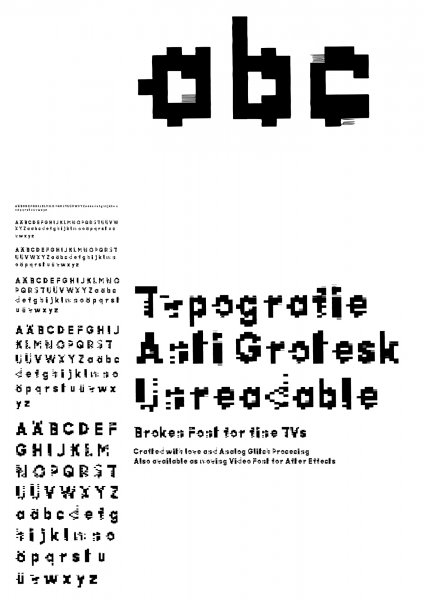 Eine experimentelle Video-Font entwickelt mithilfe von Analogem Glitch Processing.