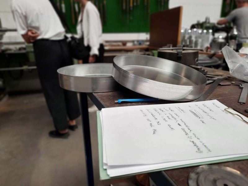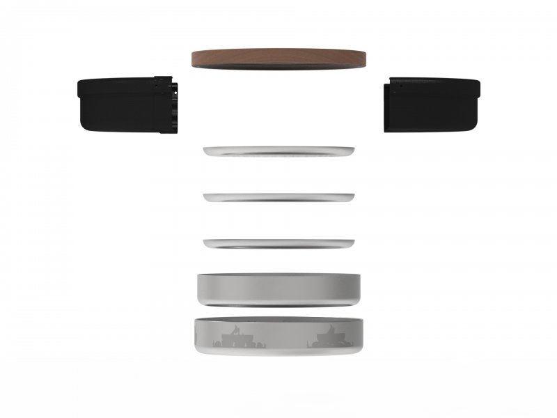 Die Pfanne wird im Outdoor-Bereich benutzt und besteht aus zwei konvex geformten Edelstahlformen und 3 Tellern.