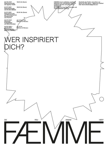 Das muss sich ändern! Mit FÆMME wollen wir Frauen in kreativen Berufen unterstützen und ihnen Sichtbarkeit geben. FÆMME ist ein weibliches, kreatives Netzwerk. Eine Plattform für Austausch und Vernetzung.