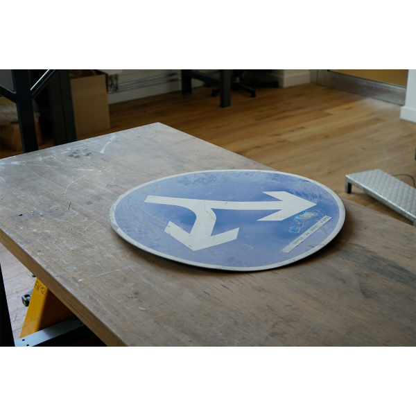 Es zielt darauf ab, die puristische Form eines Kreises beizubehalten und den Nutzen eines Straßenschildes zu verändern, indem es an zwei Stellen gebogen wurde.