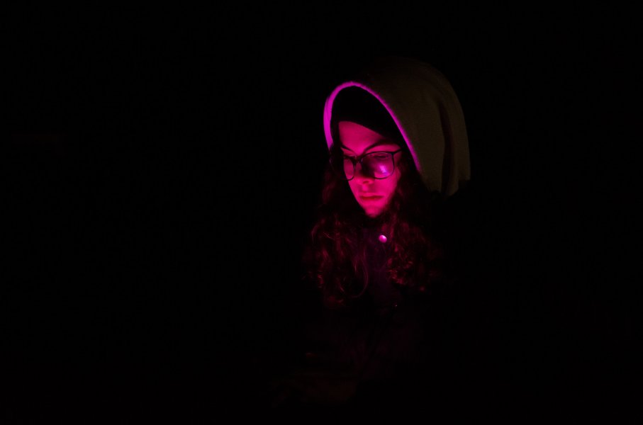 Das Portrait wurde im Dunkeln gemacht und nur das Handy diente als Lichtquelle.