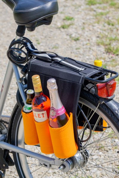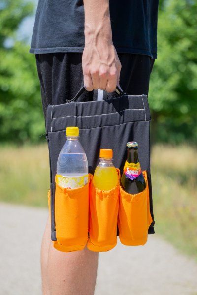 Der Zugang zu flexiblem Transport von Getränkeflaschen wird durch ein Flaschen Tragerl geschaffen, welches in 5 verschiedenen Varianten verwendet werden kann. Davon sind zwei Varianten für den Transport auf dem Fahrrad und drei für Fußgänger gedacht.