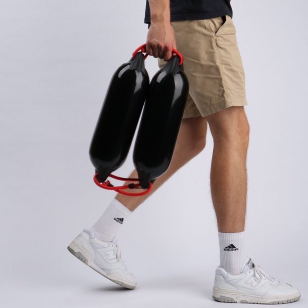 FENDER_ ist ein Sitzkissen, bestehend aus 2 Bojen sowie 2 Spanngurten, vereint zu einem Ready Made, welches jedoch im Kontext des Industriedesigns sehr wohl auch als brauchbares Produkt gesehen werden kann.