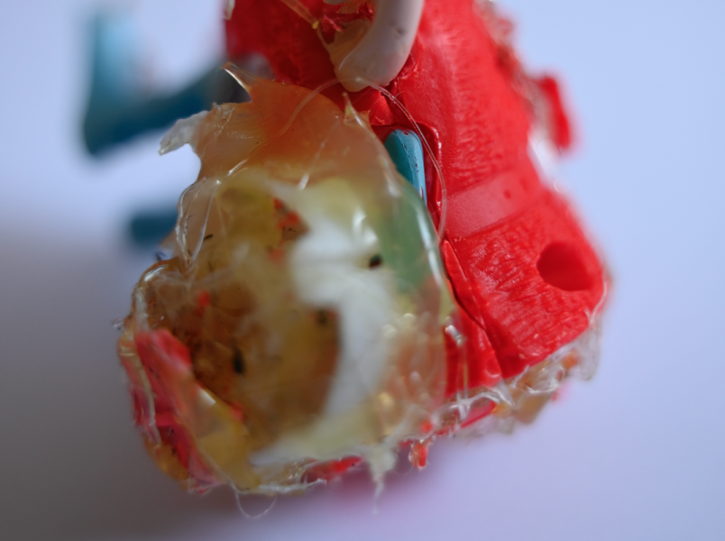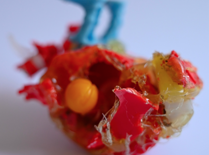 Zerstörung eines Happy-Meal-Spielzeugs mit verschiedenen Werkzeugen. Anschließende Rekombination der Einzelteile zu einem neuen Objekt mit Heißkleber. Filmische und fotografische Dokumentation. Video unter: www.lewin-dudewic.com/destruction