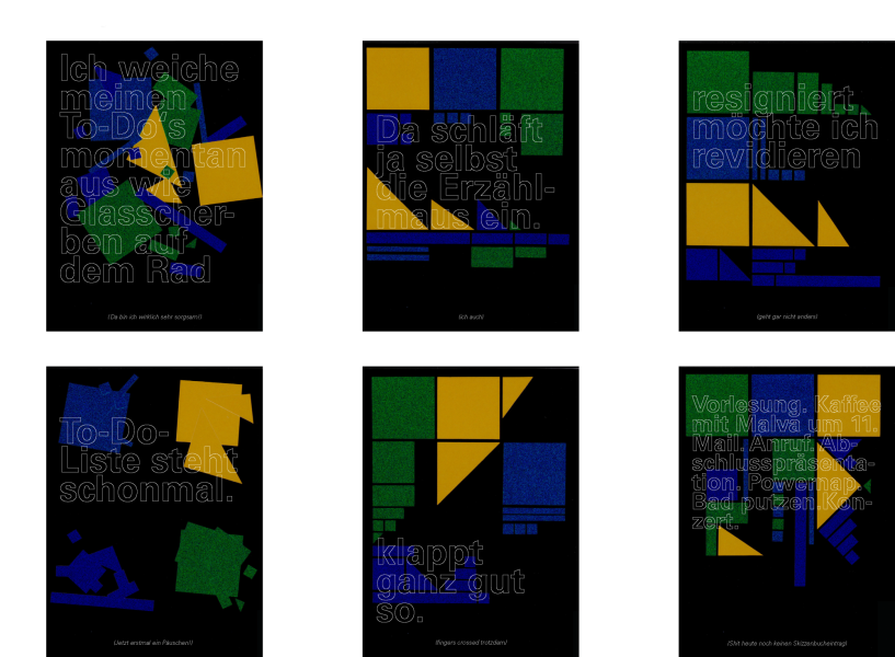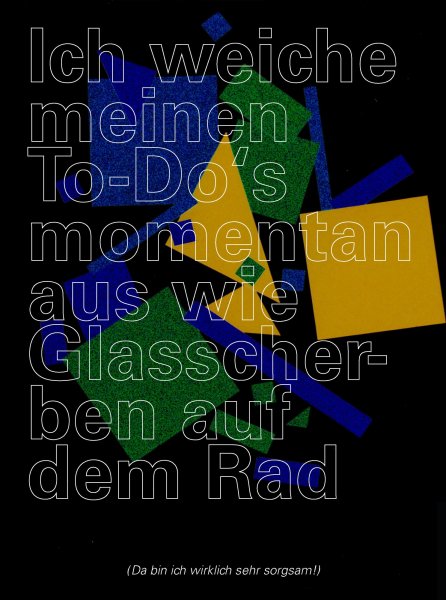 Jeden Tag ist es für uns eine Aufgabe, zu sortieren. Wo müssen wir Prioritäten setzen? Wie gehen wir mit schwierigen Phasen um? Diese Arbeit will die Strategien durch Farbe und Form erlebbar machen.