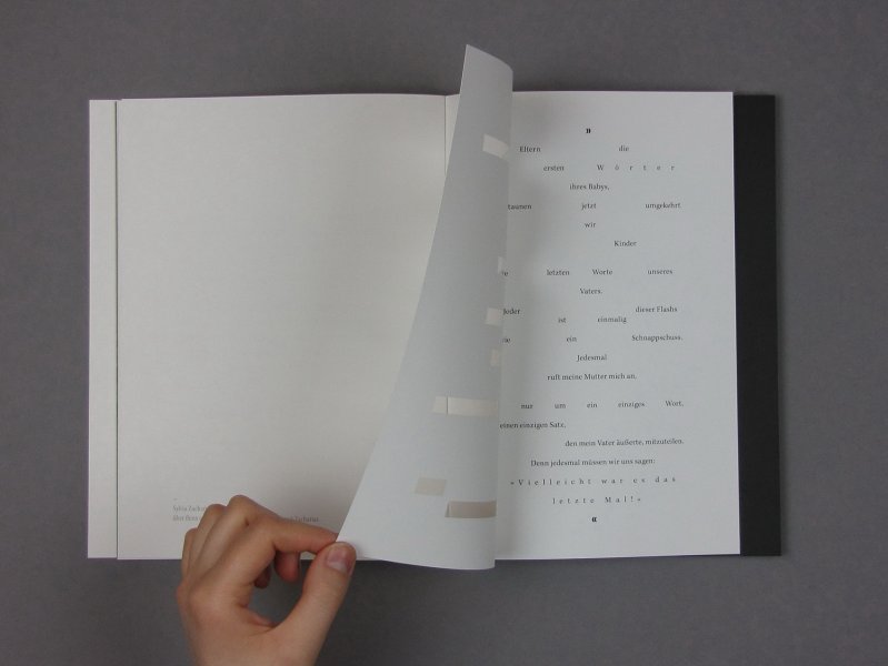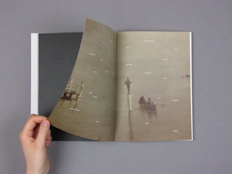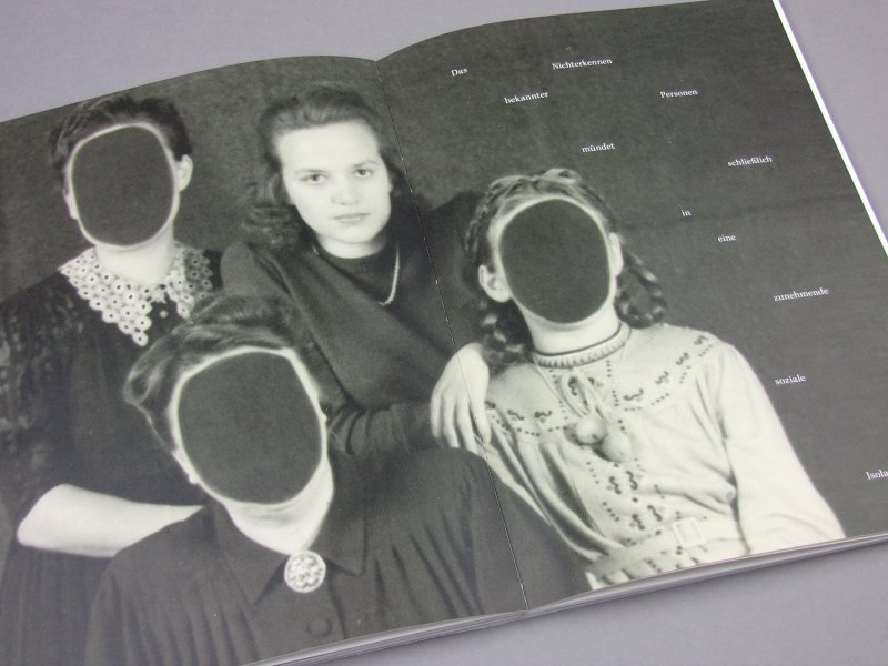 Durch den Verzicht auf Farbe bekommt die Gestaltung eine gewisse Ruhe und Sachlichkeit. Die Verwendung von alten, verblichenen Fotos unterstreicht den emotionalen Aspekt.